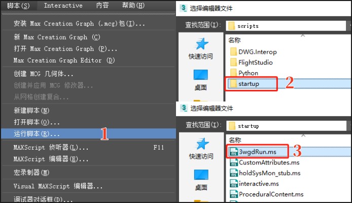 3ds Max软件的脚本->运行脚本->startup文件夹->双击 3wgdRun.ms,就成功启动了